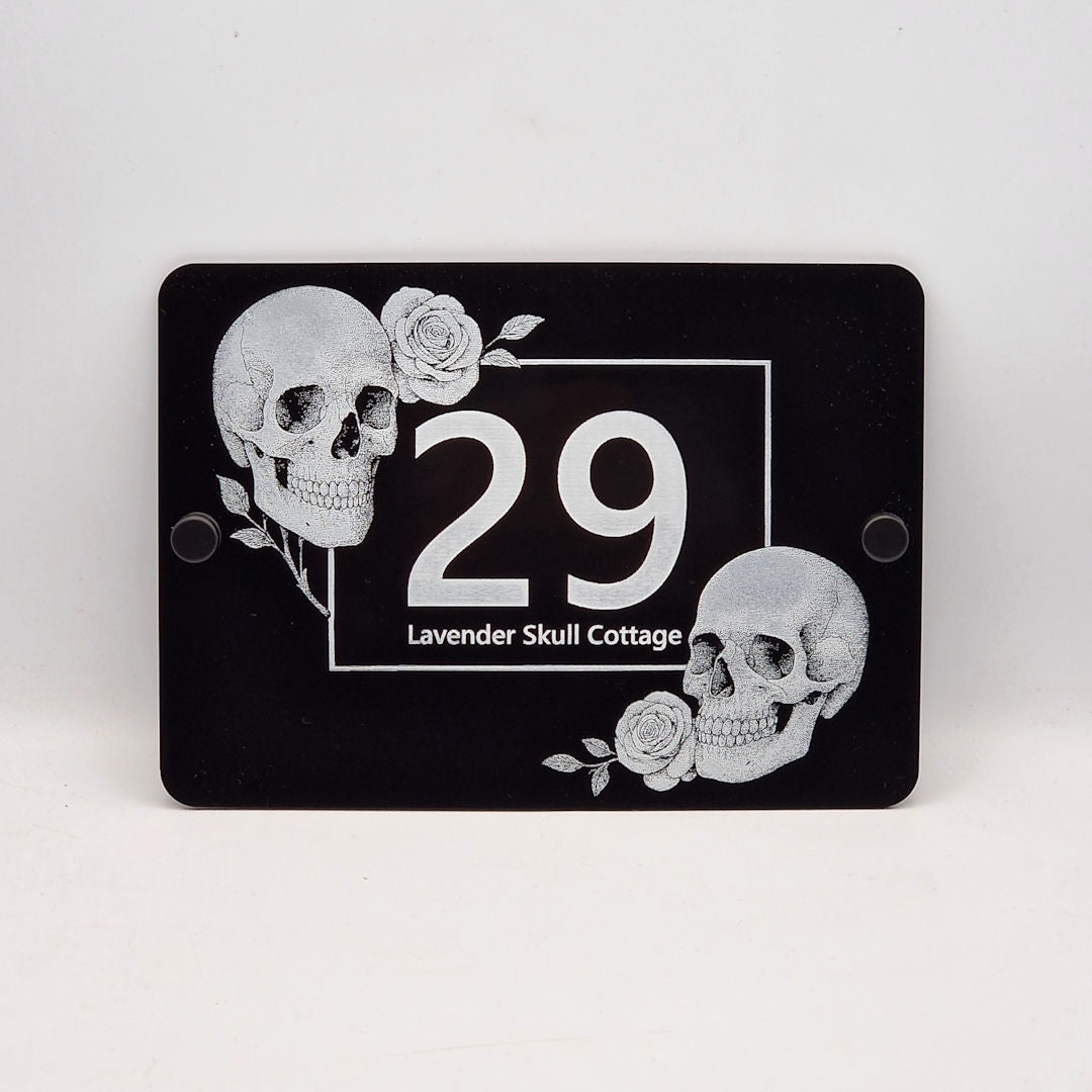 Personalised Engraved Acrylic Skulls and Roses House Number Sign
