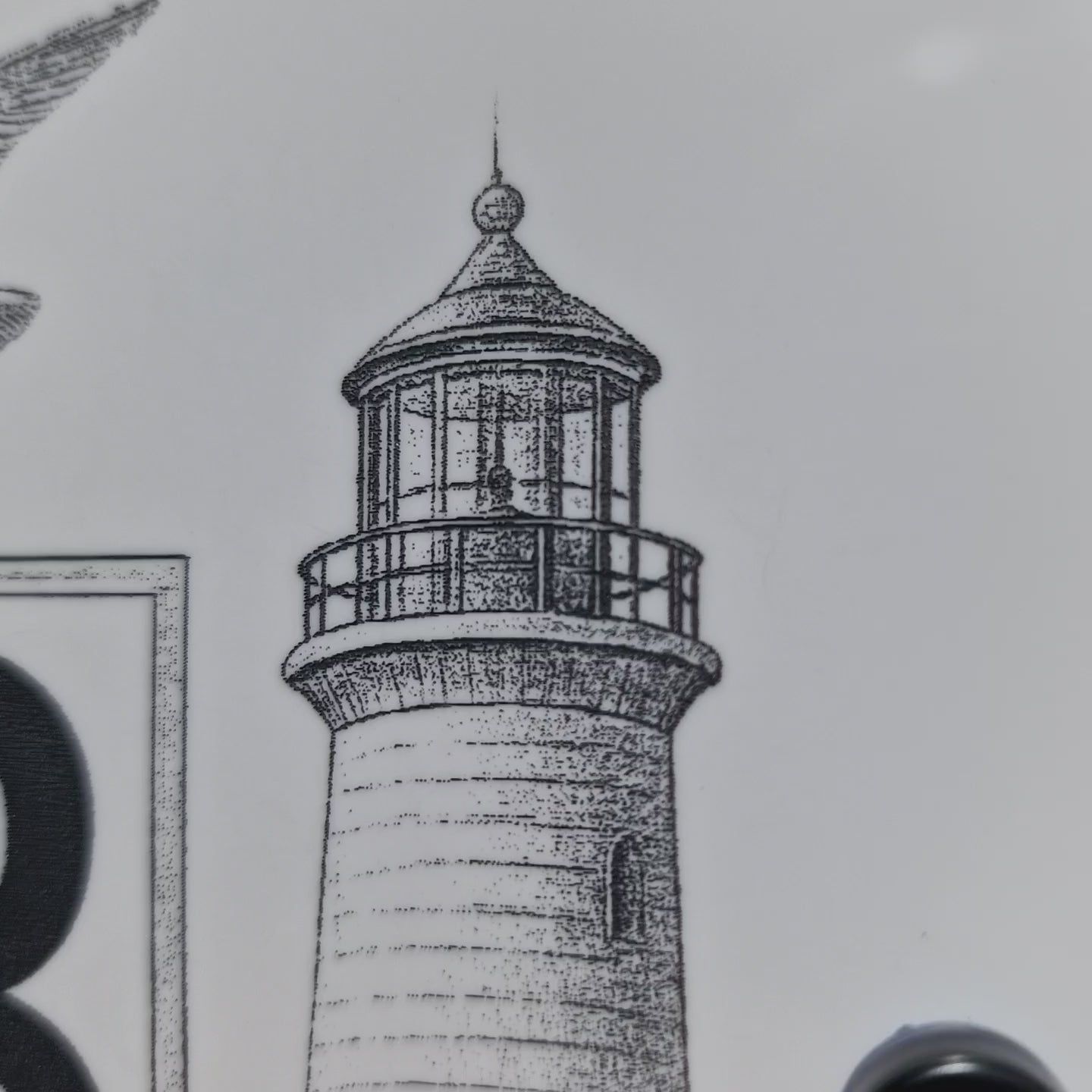 Bring a touch of the coast to your home with this beautifully detailed house number sign, featuring a classic lighthouse, a moored fishing boat, and gently soaring seagulls. Each design is laser engraved onto durable white acrylic and finished with weatherproof black patio paint, creating a clean and lasting contrast.